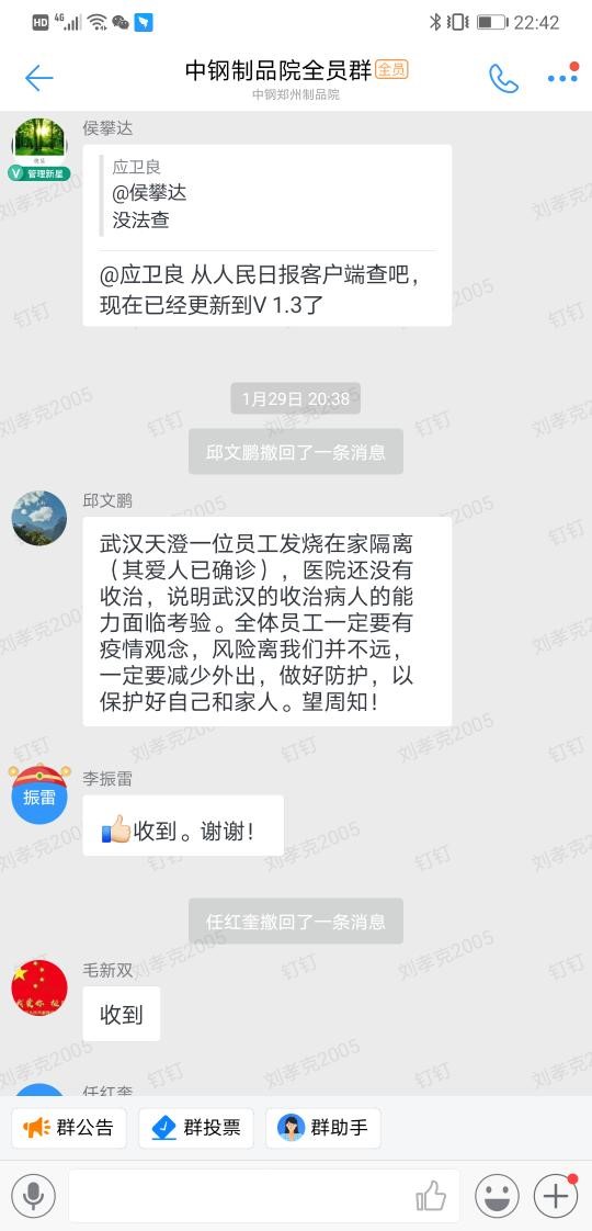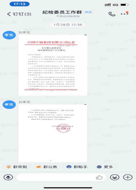 疫情就是命令,防控就是責任,監(jiān)督就是擔當。近日爆發(fā)的新型冠狀病毒肺炎疫情,牽動著每一個國人的心,中鋼制品院紀委積極貫徹落實習近平總書記關(guān)于新型冠狀病毒肺炎疫情的重要指示批示和重要講話精神,按照黨中央統(tǒng)一部署,在中鋼集團和天源黨委紀委以及制品院黨委的領(lǐng)導下,把疫情防控工作作為當前最重要的工作來抓,主動靠前,聚焦防疫工作關(guān)鍵重點,嚴格監(jiān)督檢查,為打贏疫情防控狙擊戰(zhàn)提供堅強監(jiān)督保障。 迅速行動 1月28日,在集團紀委《關(guān)于履行監(jiān)督職責 做好疫情防控工作的通知》下發(fā)后,制品院紀委第一時間進行了傳達,要求院紀委委員、各支部紀檢委員、紀檢干部扛起政治責任,積極履行監(jiān)督職責,督促各單位做好疫情摸排和人員信息報告工作,確保各項疫情防控措施不折不扣貫徹落實。 靠前指揮的紀委書記 疫情發(fā)生后,院黨委副書記、紀委書記邱文鵬就時刻關(guān)注著疫情的進展,每天在群里發(fā)布相關(guān)訊息,提醒大家提高警惕,加強防范。 2月1日,在制品院新型冠狀病毒肺炎疫情防控工作視頻會議召開之后,邱書記就如何做好疫情防控監(jiān)督檢查工作做出明確要求,強調(diào)我院疫情防控工作部署到哪里,監(jiān)督檢查就要跟進到哪里。 2月2日,邱書記針對落實疫情防控監(jiān)督檢查工作再次做出明確要求,從2月3日起至復工前,紀委委員和紀檢干部輪流值班,重點做好和疫區(qū)有接觸人員是不是得到有效監(jiān)控、防控機制是否得到執(zhí)行、值班人員是否到位、疫控物資是否準備到位并合理發(fā)放、發(fā)現(xiàn)問題是否及時通報等五個方面的監(jiān)督工作,做細疫情防控監(jiān)督工作記錄,并帶頭參與監(jiān)督檢查工作,帶頭做好值班值守。 做實做細監(jiān)督 為掌握員工及家屬的健康情況,制品院紀委督促各單位每日認真核實員工信息,并對各單位上報的情況進行抽查,把全院人員中離開鄭州或分、子公司工作地的人員情況進行匯總,根據(jù)到過/途徑疫區(qū)或接觸過疫區(qū)的人員等情況從中篩選出重點人群予以重點關(guān)注,每日進行跟蹤,動態(tài)更新重點關(guān)注人員臺賬。 為做細監(jiān)督,紀委值班人員深入到疫情防控各項工作的第一線,檢查每個單位的值班情況和值班記錄、進出人員的檢查情況、疫情防控機制的落實情況、防疫物資的采購和發(fā)放工作以及消殺防護工作,認真做好監(jiān)督記錄并發(fā)送到紀檢工作群。 眾志成城,疫情終將結(jié)束。紀檢干部沖在疫情防控第一線,以監(jiān)督實效保障疫情防控工作高效順暢開展,以扎實的工作成效詮釋忠誠與擔當。