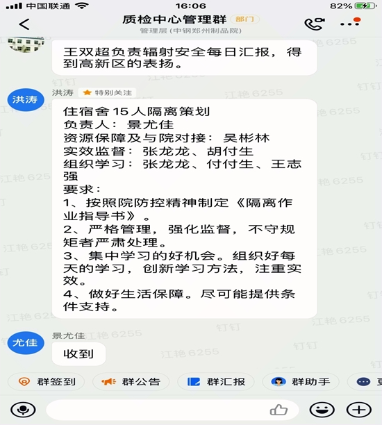 為了能讓質(zhì)檢中心更多外地的員工盡快實(shí)現(xiàn)復(fù)工,院領(lǐng)導(dǎo)和質(zhì)檢中心努力協(xié)調(diào)解決,2月18日,質(zhì)檢中心接到了院同意為目前仍在外地又沒有鄭州住房的員工提供隔離宿舍的通知。接到到通知的第一時(shí)間,質(zhì)檢中心洪濤主任立刻安排了隔離負(fù)責(zé)人并進(jìn)行了隔離策劃,策劃內(nèi)容中有負(fù)責(zé)人、資源保障對(duì)接人員、監(jiān)督人員及組織學(xué)習(xí)人員,指示要加強(qiáng)監(jiān)督,嚴(yán)格管理,做好生活保障的同時(shí)還要組織好隔離人員的學(xué)習(xí)。
